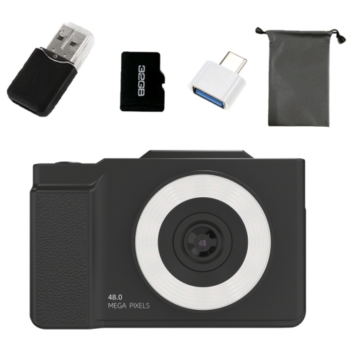 This H13 6400W HD CCD digital camera is equipped with a 1/1.7-inch large-size CCD sensor, supports 24 million real pixels and 64 million interpolated output, is equipped with a 2.8-inch 180° flip screen and 16x digital zoom, supports 4K video and RAW format shooting. The package includes a Type-C data cable and a lanyard. It is an entry-level CCD camera with both professional performance and portable design.
