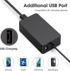 Replacement for Microsoft Surface Charger, Input: AC 100V-240V; Output: 15V 4A; USB output: 5V 1A; Power output: 65W (Max); Model A1706 Surface Pro Charger 65w Power Supply Compatible with Microsoft Surface Pro 7 / Pro 6 / Pro 5 / Pro 4 / Pro 3 / Surface Pro X, Surface Book 1/2/3, Surface Laptop 1/2/3, Surface Go 1/2, Surface Laptop Go 65W Power Supply quickly recharges the battery, come with the USB port allows you to charge another device such as your phone at the same tim