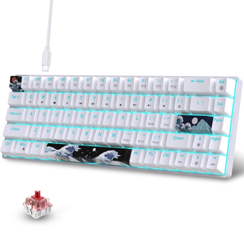 68 Keys Gaming Keyboard USB Wired Portable RGB Backlight Keyboard for Windows Laptops Computer (White)