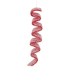 Red and white sugar coated candy ribbon ornaments. Fully dimensional and comes as a set of 6 ornaments. Each comes ready to hang on a clear cord