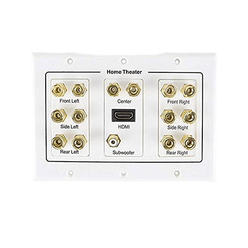 Upgrade your home theater setup with the CS-HDM71BPWP 7.1-Channel Home Theater Wall Plate. Simplify in-wall wiring for your speakers and TV with this sleek solution. With connections for up to seven speakers, a powered subwoofer, and an HDMI cable, it ensures a tidy installation behind your receiver. Easily mountable to an in-wall junction box or triple-gang bracket, this plate accommodates various speaker wire types and banana plugs for a professional-looking finish.