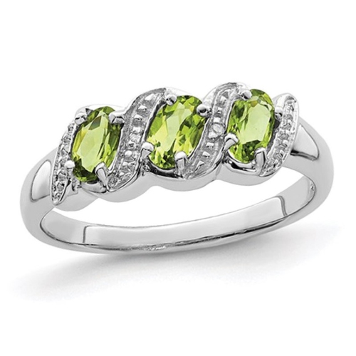 A beautiful 3 stone oval gemstone peridot ring 7/10 carat (ctw) with rhodium plated sterling silver.