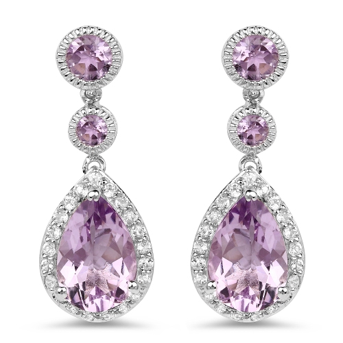 7.16 Carat Genuine Pink Amethyst and White Topaz .925 Sterling Silver Earrings