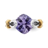 This sleek polished sterling silver with gold plated highlights is brought to life with s stunning cushion cut lab-created blue-purple garnet. This is not can amethyst but a lab-grown garnet. Show off this special ring everyday.