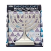 LED lighted musical dancing lights menorah. 2 button options; traditional Menorah lights; musical dancing lights. 3 power options; adapter with micro-USB, micro-USB and batteries