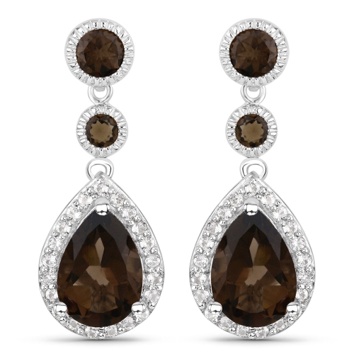7.34 Carat Genuine Smoky Quartz and White Topaz .925 Sterling Silver Earrings