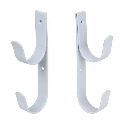 White 2-hook swimming pool accessory. Holds maintenance equipment. Constructed of corrosion-resistant aluminum