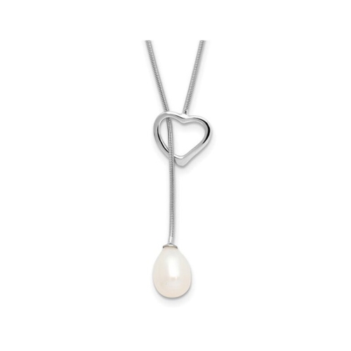 7-8mm Freshwater Cultured Pearl Heart Pendant Necklace in Sterling Silver