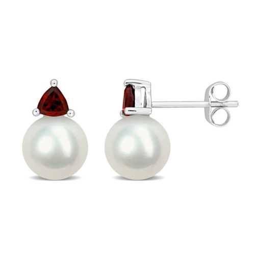 8-8.5 mm Cultured Freshwater Pearl Earrings with Garnets in 10K White Gold