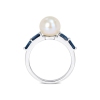 8-8.5mm White Freshwater Cultured Pear with Sapphires Ring in 10K White Gold
