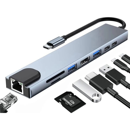 8-in-1 USB C Adapter with 4K HDMI, Type C 100W PD, USB C Port, USB 3.0, RJ45 Ethernet, SD/TF Card Reader, Docking Station Compatible with USB C Laptop and Other Devices