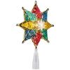 Lighted multi color crystal 8 point star Christmas tree topper. Clear bulbs shine through the multi color faceted prism. If one bulb burns out the rest will stay lit