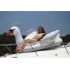 Two person giant white swan towable pool float. Six handles for easy grip and security; attaches to boats. Fits up to two people; not recommended for small children