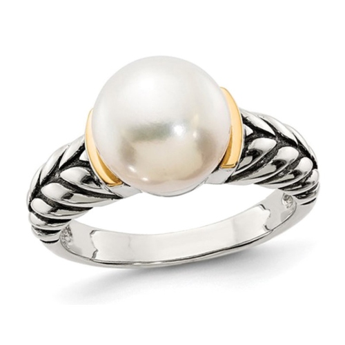 9.5-10mm Cultured Freshwater Pearl Ring in Sterling Silver with 14K Gold Accents