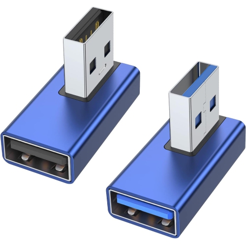 90 Degree USB 3.0 Adapter 2 Pack, Left and Right Angle USB A Male to Female Converter Extender for PC, Laptop, USB A Charger, Power Bank and More (Blue)