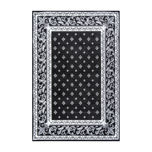 This elegant rug's medallions and acanthus leaf border are inspired by traditional French rug patterns. Our version in deep charcoal and ivory is the perfect way to update a living room, bedroom, entry, office or dining room.