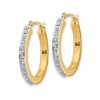 Add a touch of sophistication to your jewelry collection with these affordable diamond accent hoop earrings. Warm 14 karat yellow gold is set with shimmering tiny round accent diamonds to complete the look of this pair that you'll want to wear every day.