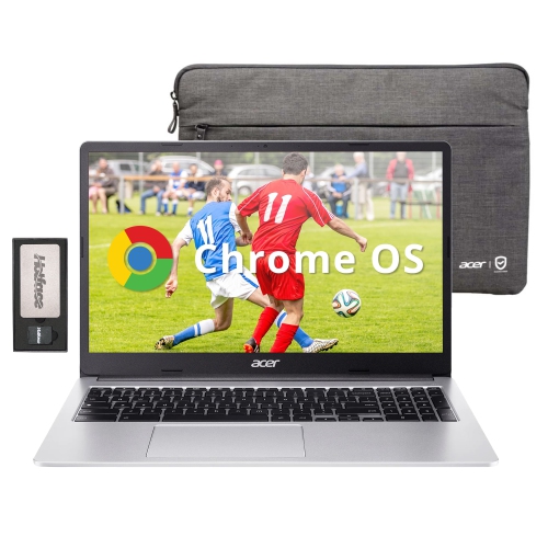 Acer Chromebook 15.6" Full HD IPS Display, Intel Celeron N4500, 64GB eMMC, 4GB LPDDR4 RAM, Intel UHD Graphics, Numeric Keypad, WiFi 6, Chrome OS, Silver, 128GB Docking Station