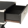 Bring the trending campaign style into your home with this updated Babs end table. With featuring of metal corner strapping and flush mount drawer pull which is true to the style. It is also offered in three colors to expand the options of this timeless design red, black, and white.Features : Finish: Black1 DrawerWooden top with metal cornersWooden "X" shape base and crossbar supportDrawer: Glide side metal</...
