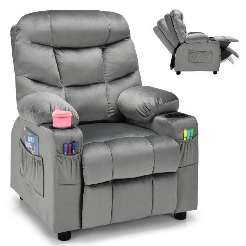 This recliner is easy to operate for sitting or lying by adjusting the backrest and footrest, so as to meet kids' different needs of reading, watching TV, napping, etc. Premium velvet fabric, sturdy solid wood frame, and thick sponge padding ensure that the chair can withstand long-term use. Featuring an ergonomic high backrest and wide armrests, the sofa will offer extra comfort and relaxation.It is also worth mentioning that this recliner is designed with cup holders and side pockets, allowing kids to put water cups, snacks, and books within reach.