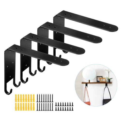 AGSIVO 4pcs Vintage with Hook Wall Mounted Floating Hanging Shelf Board Support Holder