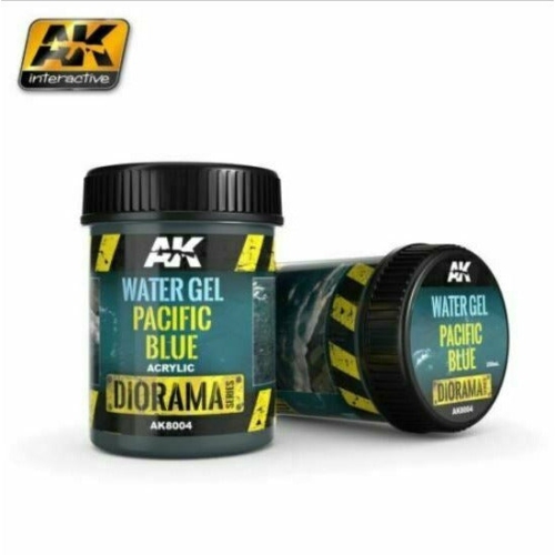 AK Interactive Water Gel Pacific Blue 250ml NewPacific Blue dense gel. Specially developed to mimic the waters of the Pacific Ocean. To create a sense of depth, apply the gel over a painted surface. Drying time is dependent on the amount used; however, 24 hours is what we recommend. This is a high quality acrylic product developed for extreme realism.Acrylic product for tex...