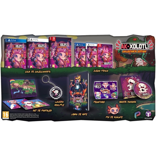 Harness the remarkable regenerative power of axolotls in the AK-Xolotl Collector's Edition.This Collector's Edition comes with Full Game (NSW), Artbook, Axolittle Keyring, Postcard Set, Soundtrack, Axolotl Pin, Stickers Sheet, Collector's BoxExperience the thrill of rising stronger from defeat, unlocking new weapons with each battle. Journey through a world teeming with adventure, where you'll encounter different baby axolotls known as Axolittles. Nurture them with care and