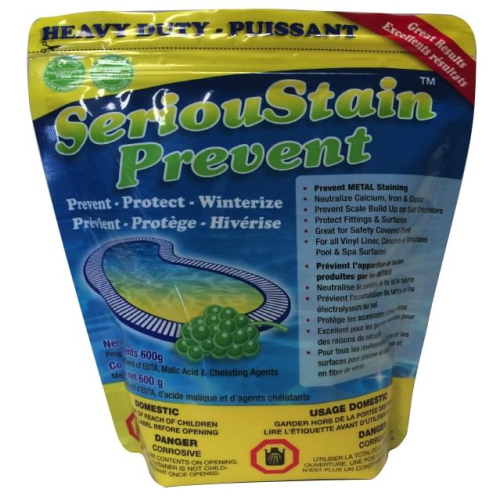 Serious Stain Prevent helps prevent staining by "Locking up" mineral discolouration caused by dissolved metals, bore water and iron leaching etc. Especially in heated pools where metals plate out easily onto the walls and floor. It contains no phosphate based acids that provide nutrient for algae unlike other products. Regular use also prevents scale build up on salt chlorinator electrodes. It is suitable for all pool & spa types. For high metal concentrations use after treat