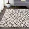 Inspired by vintage Beni Ourain rugs, our soft and fluffy shag yarns make it easy to go barefoot. Our classic Moroccan pattern has a deep gray diamond trellis on a field of ivory.