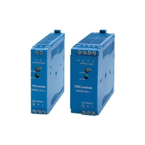 The DRB Series DIN Rail Power Supplies operate at 24-48V, depending on model-ideal for basic low-power applications. With industry-leading efficiency of up to 91%, the DRB Series supports the growing trend for simple, economic DIN power solutions for industrial, building automation and process control applications. Housed in a robust plastic case, these power supplies feature a narr...