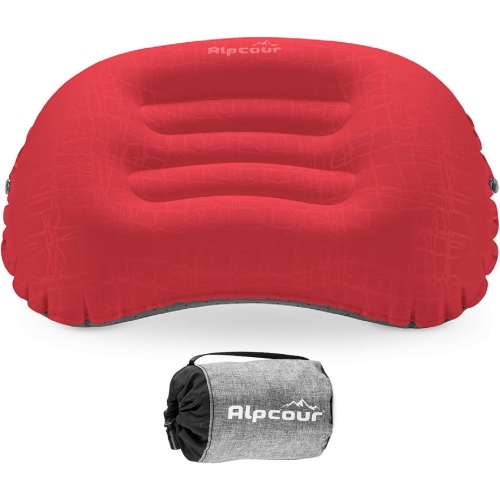Rest comfortably outdoors with the Alpcour Ultralight Inflatable Camping Pillow. Compact and plush, it inflates easily and features anti-slip rubber dots for stability. Lightweight and versatile, it's ideal for various outdoor activities, providing ergonomic support for a restful sleep.