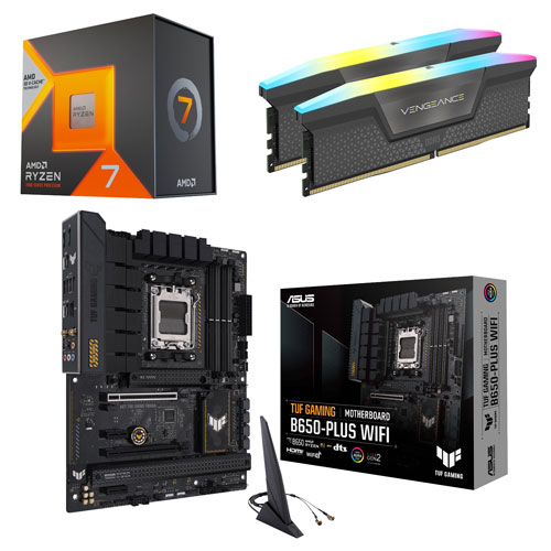 Unlock unparalleled performance with the AMD Ryzen 7 7800X3D processor, Corsair Vengeance RGB DDR5 16GB desktop memory, and ASUS TUF B650-Plus Gaming Wi-Fi motherboard bundle.