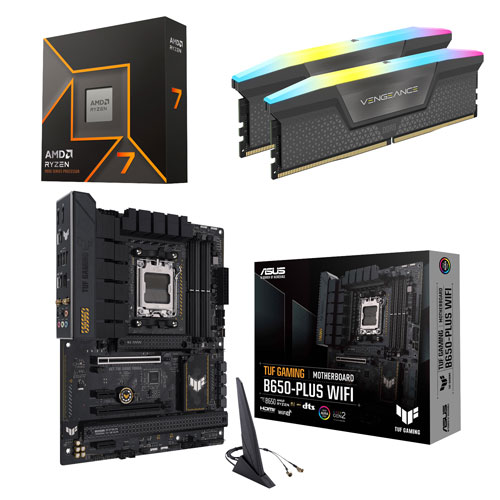 Unlock unparalleled performance with the AMD Ryzen 7 9700X processor, Corsair Vengeance RGB DDR5 16GB desktop memory, and ASUS TUF B650-Plus Gaming Wi-Fi motherboard bundle.