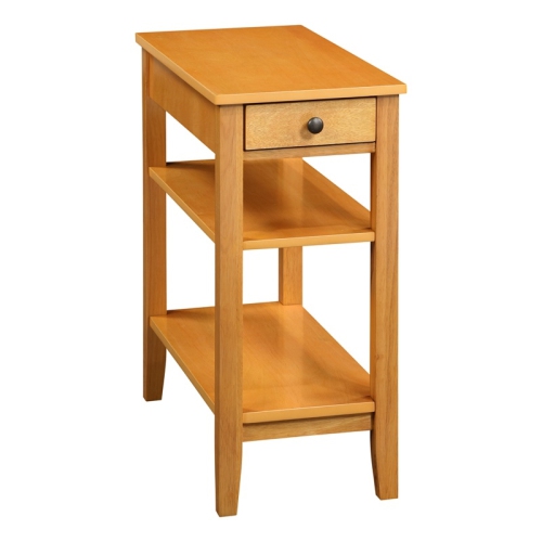 Add functionality and style to your home with the American Heritage One-Drawer Chairside End Table with Charging Station and Shelves by Convenience Concepts. Available in multiple finishes, this versatile and transitional-style chairside table is sure to upgrade any living space. Conveniently and discreetly located on the back end of the table is a charging station featuring two USB ports and one plug outlet perfect for charging a cell phone, tablet, and more. The powe...