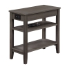 Add functionality and style to your home with the American Heritage One-Drawer Chairside End Table with Charging Station and Shelves by Convenience Concepts. Available in multiple finishes, this versatile and transitional-style chairside table is sure to upgrade any living space. Conveniently and discreetly located on the back end of the table is a charging station featuring two USB ports and one plug outlet perfect for charging a cell phone, tablet, and more. The powe...