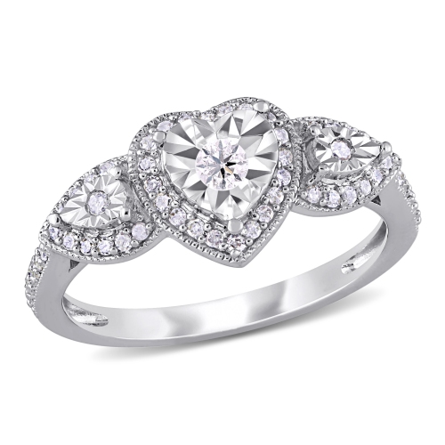 Amour 1/3 CT TW Diamond Heart Halo Ring Silver - Size 6