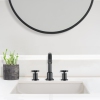 This widespread faucet, featuring a bold industrial design with its knurled tip swivel spout and matte black finish, will make the perfect statement in your bathroom. Superior solid brass construction ensures long-lasting durability and the NEOPERL® aerator prevents splashing for smooth water flow and energy savings. Quality and performance perfectly come together in this exceptional faucet.