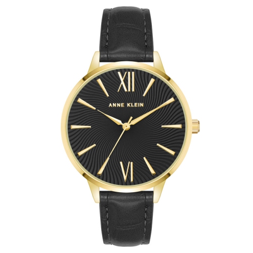 Anne Klein Ladies 36.5mm Gold-Tone Round Watch with Black Dial and Black Croco Vegan Leather Strap