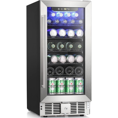 Antarctic Star 15-Inch 115-Can Beverage Fridge, 2.9 Cu.Ft Cooler with Safety Lock, Low Noise, Transparent Glass Door with Stainless Steel Handle