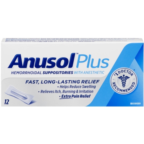 Anusol Plus Suppositories relieve the burning sensation swelling itching and pain due to internal hemorrhoids. These suppositories contain a topical anaesthetic along with an emollient and an astringent agent to help relieve discomfort caused by hemorrhoids.For fast long-lasting relief of the pain and discomfort of internal hemorrhoids use Anusol Plus Suppositories. The formula contains an emollient agent to ease the burning sensation and a gentle astringent agent to help