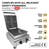 This waffle iron makes 4 butterfly-shaped waffles on a stick, which can be served both indoors and outdoors. Stainless steel body and nonstick coating ensure long service life and perfect quality of the final product.
