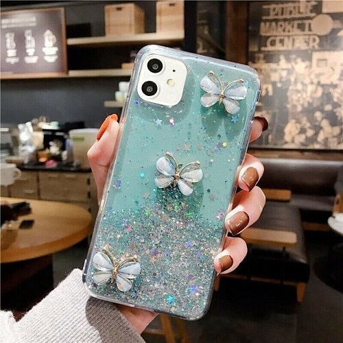Apple iPhone 11 Green Smart Shockproof Glitter Crystal butterfly Wrist Strap Cover Case
