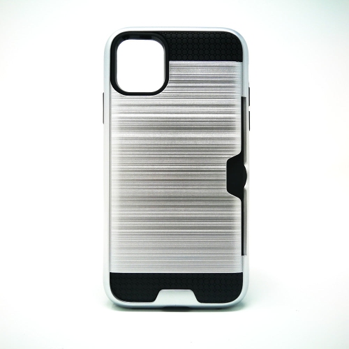 Slim Sleek Case with Credit Card Holder Case for Apple iPhone 11 Pro Max.Available in:- Black- Gold- SilverDescriptionDurable dual-layered construction for long lasting protectionThe brushed metal card case is made from separate polycarbonate and TPU layers that come together to offer extra durabil...