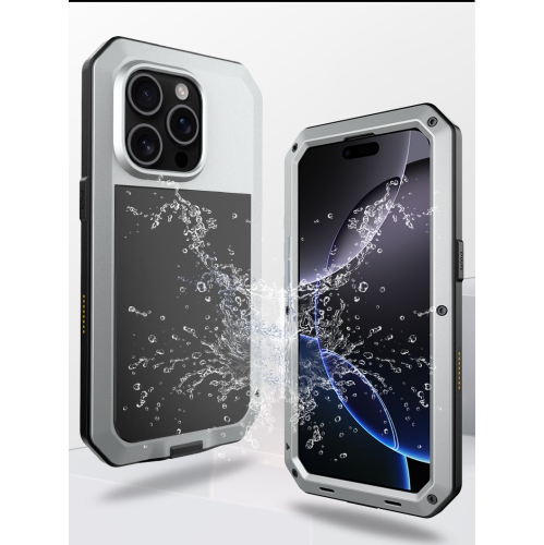 Applicable to Apple 16 Pro mobile phone case metal tank three-proof seal anti-fall anti-dust protection built-in silicone screen protector - sliver