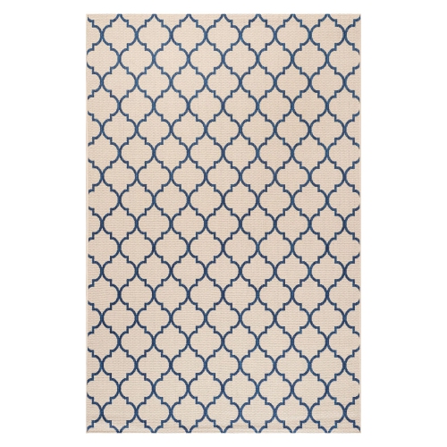 Inspired by the tile floors of Morocco, this indoor/outdoor rug adds elegant pattern to your porch, patio or sunroom. The ogee-curved trellis woven in navy adds graphic punch to a beige background.