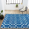 Our geometric trellis design is inspired by blue and white Moroccan tile patterns - the perfect complement to traditional, modern and coastal interiors. The ogee trellis in ivory is backed with mingled tones of blue to give this rug a vintage look. This family-friendly rug is ideal for the living room, kitchen, dining room, bedroom or entry.