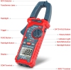 Versatile clamp meter measures AC current, AC/DC voltage, capacitance, resistance, and more. Large jaw opening for easy use in tight spaces. Features data hold, auto shut-off, backlight, and flashlight. Includes non-contact voltage testing with alarms. Safety-certified with included batteries.