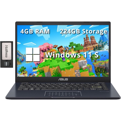 ASUS 14" FHD Laptop, Intel Celeron N4500 Processor, 224GB Storage(64GB eMMC+160GB Docking Station Set), 4GB RAM, Intel Iris Xe Graphics, 720P Camera, Win 11 S, Quiet Blue