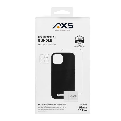AXS Essential Bundle | PROTech Plus Case, Screen Protectors and 20w Charger for Apple iPhone 15 Plus