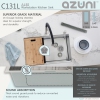 This undermount kitchen sink has the drain towards the side for the best utilization of the space under the sink cabinet and centered allowing you install the sink with the drain to the left or to the right. Also, the stainless-steel kitchen sink basin has drain grooves for optimal drainage. This handmade stainless-steel sink combines functionality, quality, and affordability. The tight 10mm radius corners are perfectly blended through an automated machine buffing system, and careful hand polished, for a luxurious finish. This undermount kitchen sink is equipped with top-level soundproofing, including thick rubber dampening pads. Each sink is additionally treated with protective coating, which reduces condensation and further dampens sound. The corrosion-resistant surface is further protected from rust and oxidation by a meticulous finishing process. Commercial-grade satin finish and gently rounded corners make maintenance as simple as wiping the surface with a damp cloth. For easy installation, all mounting hardware is provided. Our sinks are Canadian designed and meet the highest plumbing standards of North America. AZUNI sinks are trusted by architects and builders for upscale projects and modern makeovers.